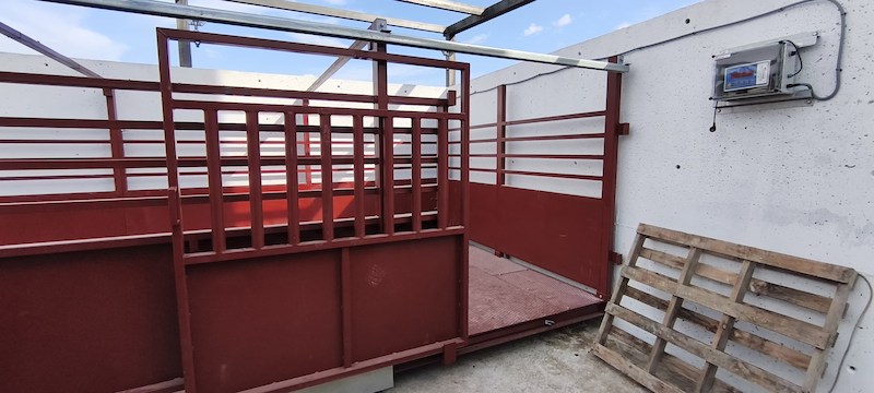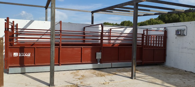 Para asegurar un pesaje preciso, la estructura se apoya sobre seis patas que incorporan sensores de peso. Asimismo, dispone de dos puertas correderas, que permiten una entrada y salida fluida de los chotos.